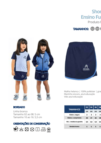 TAMANHOS02 04 06 08 cm cm cm cmEl%u00e1stico | largura 3 3 3 3 El%u00e1stico | comprimento 40 41 42 44 Vi%u00e9s | medida do aparelho 3,5 3,5 3,5 3,5Bordado branco 5 5 5 5